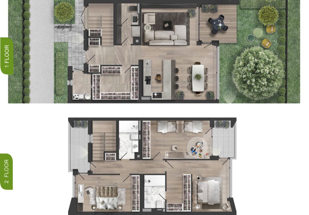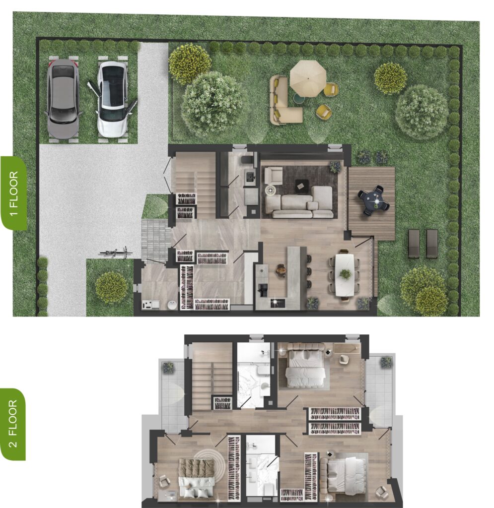 A modern gated residential complex consisting of 4 townhouses, located in the green area of the village of Chepinci – only 12 km from the center of Sofia. This is an ideal place for those who appreciate the silence of nature, but want to stay close to the city